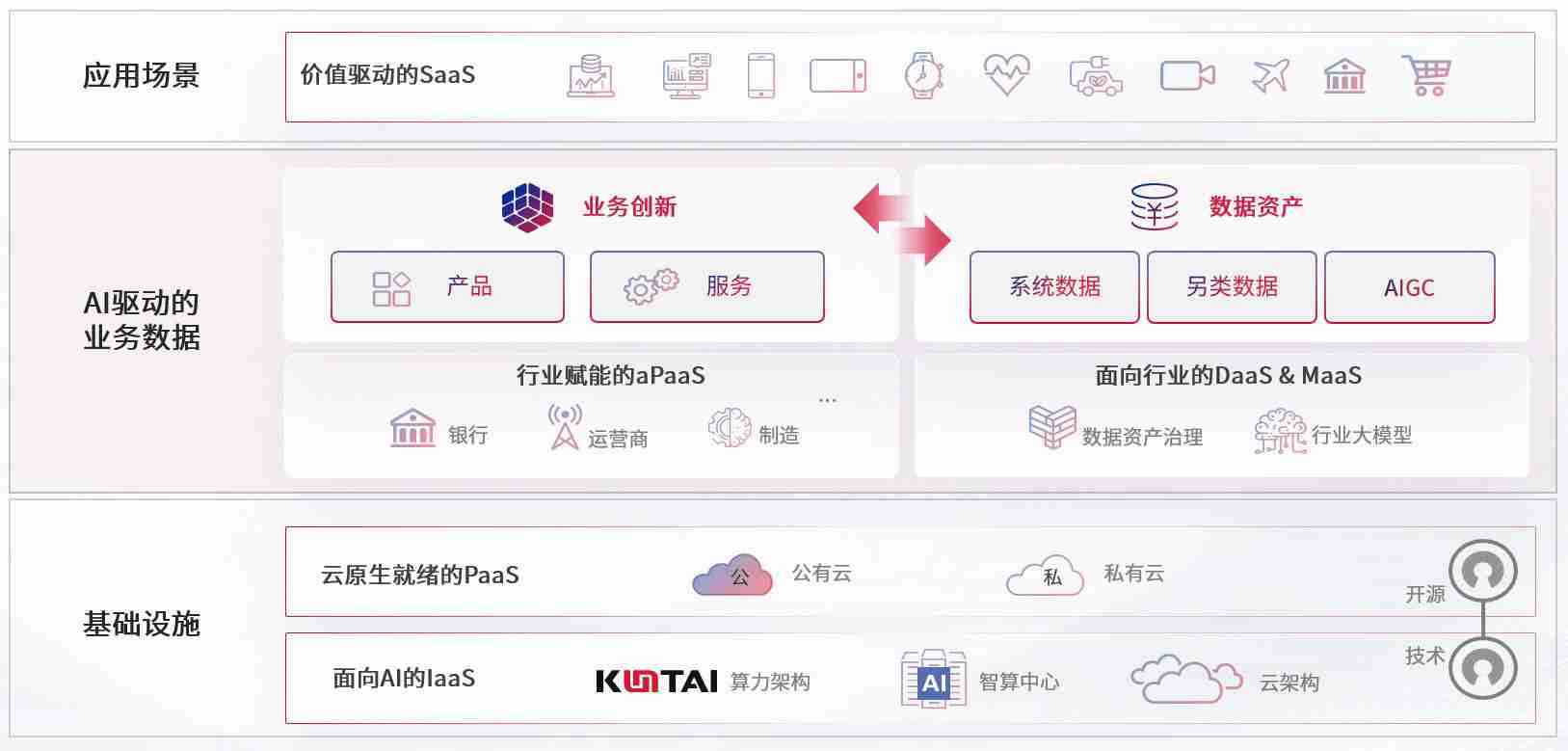 数字时代,,围绕企业数字化转型的关键要素,,,PG数码开创性的提出数云融合战略和技术体系框架,,着力在云原生、、数字原生、、AI原生和信创产业上架构产品和服务能力,,,为处在不同数字化转型阶段的快消零售、、、汽车、、、、金融、、、、医疗、、政企、、、教育、、运营商等行业客户提供泛在的敏捷IT能力和融合的数据驱动能力,,,构建跨界融合创新的数字业务场景和新业务模式,,,,助力企业级客户建立面向未来的核心能力和竞争优势,,,全面推动社会的数字化、、、、智能化转型升级。。。。